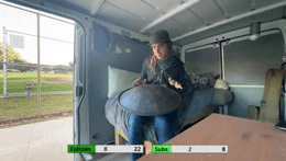 hippie plays flying saucer in van